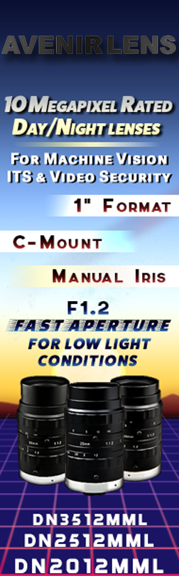 Products include a variety 1" format fixed focal length lenses with specialized models for demanding low-light applications, machine vision, and long-distance requirements. There is also a full family of 2/3" format lenses rated at 10 MP, 5 MP, 3 MP and 2MP - all economically priced.